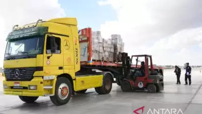 Disebutkan, pekerja bantuan harus menghalau orang-orang yang berusaha naik ke atas truk dan menghadapi risiko tertembak di Kota Gaza.