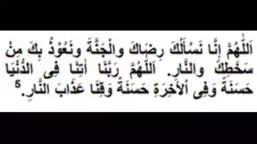 Ya Allah, sesungguhnya kami memohon keridaan-Mu dan surga, kami berlindung pada-Mu dari murka-Mu dan siksa neraka. Wahai Tuhan kami, berilah kami kebaikan di dunia dan kebaikan di akhirat serta hindarkanlah kami dari siksa neraka.