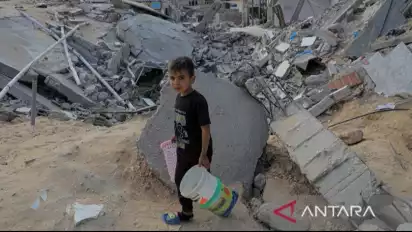 Lebih dari tujuh bulan setelah perang Israel, sebagian besar wilayah Gaza hancur, membuat 85 persen populasi daerah kantong tersebut mengungsi di tengah blokade makanan, air bersih, dan obat-obatan yang melumpuhkan, menurut PBB.