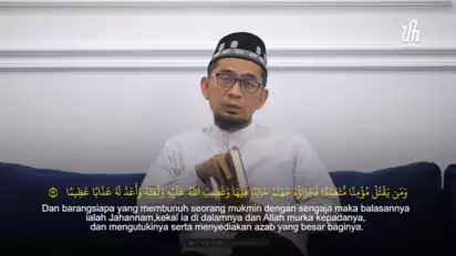 "Artinya, barangsiapapun yang membunuh seseorang mukmin dengan sengaja (pembunuhan berencana), maka apa yang potensi dia dapatkan (si pelaku): dia terancam neraka jahanam," kata UAH menjelasakan