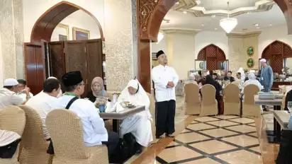 Tausiah diberikan ketika para jemaah calon haji Maktour menyantap makan siang di Holten Hilton, Madinah.