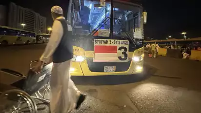 Aguk menyebut setelah jemaah lansia dan disabilitas turun dari bus (Syib Amir), sudah banyak para petugas berseragam haji berwarna hitam-putih, khas petugas Indonesia, dengan logo Haji Ramah Lansia.