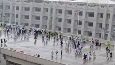 Makkah, tvOnenews.com- Kawasan Mina, Makkah, Arab Saudi diguyur hujan di tengah cuaca ekstrem yang suhunya bisa mencapai 45 derajat Celcius lebih pada Senin sekitar pukul 16.00 waktu setempat.