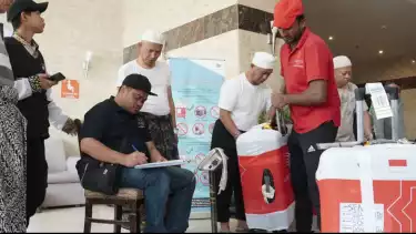 "Selanjutnya, koper bagasi jemaah akan dibawa lebih dahulu setelah proses penimbangan. Barang bawaan yang ikut jemaah naik bus adalah tas kabin," tuturnya.