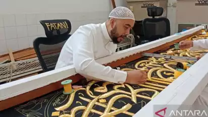Makkah, tvOnenews.com - Pria berkopiah itu tampak fokus menusukkan jarum sulam ke kain berwarna hitam yang terhampar di hadapannya. Jari kiri menekan dari bawah hingga tembus ke atas, sementara tangan kanan dengan cepat menarik jarum yang telah terkait dengan benang sutra bersepuh emas.