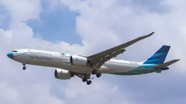 Ilustrasi pesawat Garuda Indonesia membawa rombongan jemaah haji kloter 3 Embarkasi Kualanamu. (Tim tvOne)