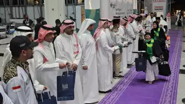 Mereka memasuki bandara AMAA Madinah dengan melewati karpet yang digelar mulai pintu masuk terminal haji sampai gerbang imigrasi.