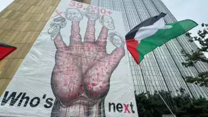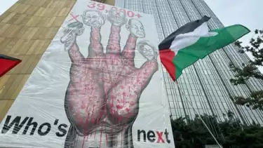 Dikutip tvOnenews dari Anadolu, Minggu (28/7/2024), puluhan pengunjuk rasa pro-Palestina membentangkan Bendera Palestina dan tulisan dalam spanduk dengan slogan "Bebaskan Palestina" dan "Tanggungjawab ada di tangan Anda".