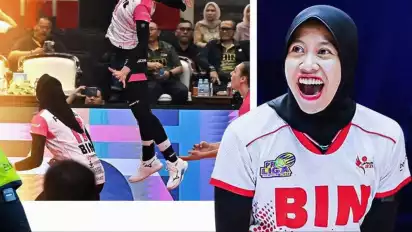 Perhatikan, setiap kali Megawati bertanding, terlihat pemain voli berhijab ini mulutnya komat-kamit, seperti melafalkan sesuatu.
