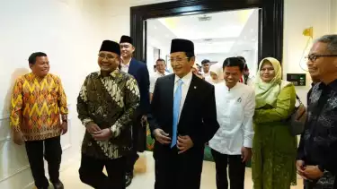 Dari foto-foto yang diterima tvOnenews.com tampak haru terpancar dari Menag dari Kabinet Indonesia Maju Jokowi - Ma'ruf Amin tersebut.