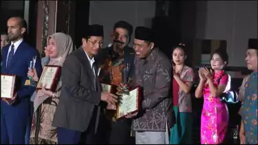 Rektor UIN Saizu Purwokerto, Prof. Ridwan menerima langsung piagam penghargaan dari Menag RI Prof. Nasaruddin Umar dalam gelaran Moderasi Beragama Award 2024 di Taman Mini Indonesia Indah (TMII), Jakarta pada Jumat (27/12/2024).