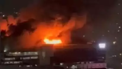 Berdasarkan video diterima oleh tim tvOnenews.com, api tampak melahap bagian atas gedung hingga menimbulkan asap hitam yang membubung tinggi ke udara.