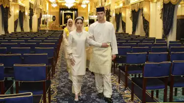 "Dennis Muhammad memasangkan cincin kawin di jari Tunku Aminah di sebuah ruangan khusus di istana," demikian pernyataan kantor pers kerajaan Johor dikutip tvOnenews.com dari Daily Mail, Minggu (23/3/2025).