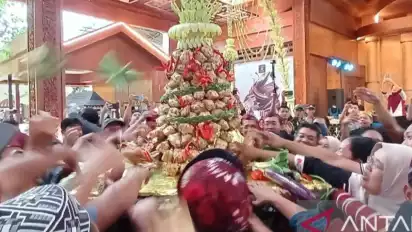 Ketika Warga Berebut Gunungan Ketupat Cokelat di Blitar