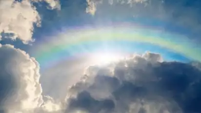Terkadang muncul sebuah pelangi yang sangat indah di langit.