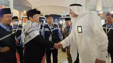 Pesan tersebut disampaikan saat Menag RI dan Wamenag selaku Naib Amirul Hajj, Romo Muhammad Syafi'i mendampingi para Amirul Hajj Indonesia yang baru tiba di Bandara Internasional King Abdulaziz, Jeddah, Kamis (29/5/2025).