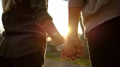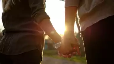 Ilustrasi sepasang manusia sedang berpegangan tangan