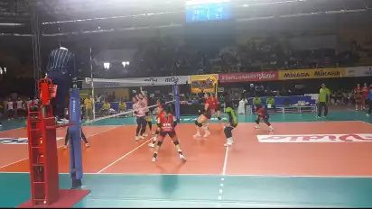 Grand Final Proliga 2023 memperebutkan juara ketiga berlangsung seru antara Jakarta BIN vs Gresik Petrokimia Pupuk Indonesia, di GOR Amongrogo Yogyakarta, Sabtu (18/3). Foto: tvOnenews.com/Nur