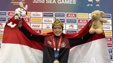 tvOnenews.com - Pencak Silat Indonesia meraih dua medali emas SEA Games 2023 Kamboja. Medali tersebut berasal dari dua nomor artistik di Chroy Changvar Convention Center Phnom Penh, Kamboja, Minggu (7/5/2023).