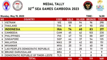 Hingga Senin (15/5/2023) pukul 16.30 WIB, Indonesia telah meraih empat medali emas, satu medali perak dan tiga medali perunggu.