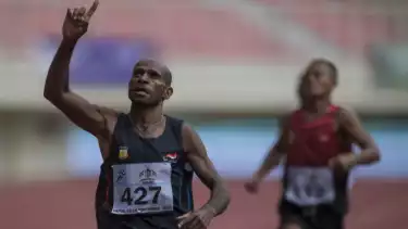 Jakarta - Atlet tuan rumah Papua Abraham Elopere mengaku sama sekali tidak menyangka bisa menjadi peraih medali emas pertama Pekan Paralimpiade Nasional (Peparnas) XVI Papua mengingat para pesaingnya merupakan atlet-atlet yang tangguh. "Saya tidak menyangka bisa menjadi juara, karena peserta di Peparnas ini banyak," kata Abraham Elopere, Sabtu, seusai menjadi yang terbaik dalam lomba klasifikasi T20 cabang olahraga atletik nomor 1.500m putra di Stadion Lukas Enembe, Kabupaten Jayapura.