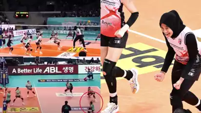 Mendapatkan spike keras tepat di wajahnya, Park Eun Ji langsung tersungkur kesakitan sambil memegangi wajahnya. Tak lama dirinya mendapatkan pertolongan dari tim medis Red Sparks.