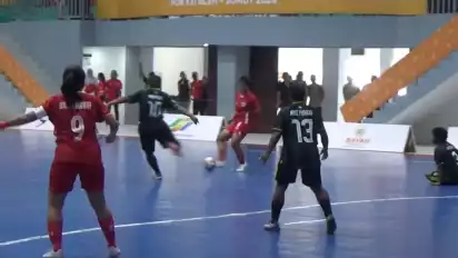 Medan, tvOnenews.com - Babak penyisihan cabang olahraga (cabor) Futsal Putri Pekan Olahraga Nasional (PON) XXI Aceh-Sumut antara Futsal Putri Papua Pegunungan harus takluk dengan skor telak 10-2 melawan DKI Jakarta di Grup A cabor Futsal Putri.