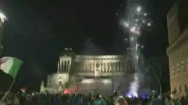 Roma, Italia - Warga Italia serentak turun ke jalan begitu gelaran sepak bola Euro 2020 berakhir dengan kemenangan Italia di babak final atas Inggris. Kemenangan atas Inggris menjadikan Italia kembali menjadi juara piala Eropa setelah absen selama 53 tahun. Karena terciptanya sejarah baru ini serta merta memicu kegembiraan rakyat Italia yang merayakan hal ini di jalan-jalan. Perayaan kemenangan tim Italia terutama terjadi di pusat ibu kota Roma.