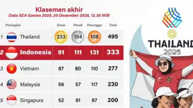Tim Indonesia menutup SEA Games 2025 dengan torehan 91 medali emas, 112 perak, dan 130 perunggu. Hasil tersebut menjadi prestasi terbaik Indonesia dalam 30 tahun terakhir sejak SEA Games 1995 di Chiang Mai, Thailand.