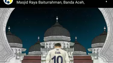 Ozil juga menampilkan gambar animasi masjid termegah di Aceh tersebut sambil menyertakan gambar animasi dirinya dalam posisi berdoa.