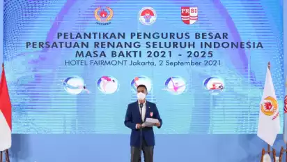 Jakarta - Komite Olahraga Nasional Indonesia atau KONI Pusat resmi melantik Pengurus Besar Persatuan Renang Seluruh Indonesia atau PB PRSI periode 2021-2025 pimpinan Anindya Novyan Bakrie.