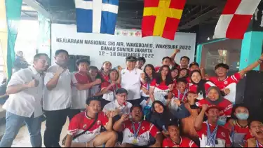Jakarta - DKI Jakarta selaku tuan rumah sukses menjadi juara umum Kejuaraan Nasional (Kejurnas) Ski Air, Wakeboard, dan Wakesurf 2022 yang berakhir hari Minggu (18/12/2022) ini di Danau Sunter, Jakarta.