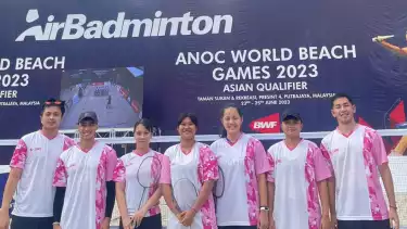 tvOnenews.com - Tim nasional AirBadminton Indonesia tengah menjalani kualifikasi zona Asia AirBadminton ANOC World Beach Games Bali 2023.