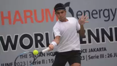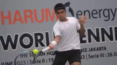 Rifqi Fitriadi Melangkah ke Perempat Final Harum Energy World Tennis 2023