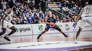 Skor akhir 87-84 atas kemenangan PJ Bakrie memastikan Andakara Prastawa cs menang telak 2-0 di Britama Arena, Jakarta, Sabtu (15/7/2023).