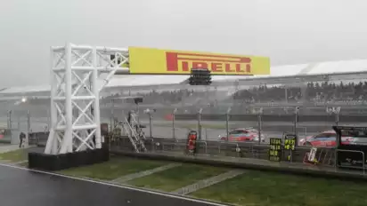 Balapan sempat ditunda beberapa menit karena kondisi cuaca sehingga dipangkas empat putaran menjadi 12 lap saja.