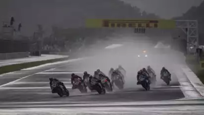 Sejumlah pembalap memacu motornya saat race 2 WorldSBK seri Indonesia 2021
