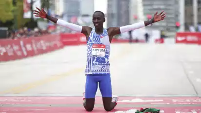 Kiptum memecahkan rekor dunia maraton dengan catatan waktu 2:00:35 saat berlomba dalam Chicago Marathon pada Oktober 2023.