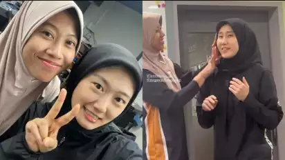 Megawati Hangestri lebih dahulu memakaikan hijab pada Yeom Hye-seon. Yeom Hye-son pun menirukan gaya layaknya wanita hijab memberi salam.