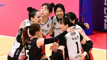 Red Sparks menghajar AI Peppers 3-1 dengan rincian skor (25-13, 18-25, 25-19, 25-15) pada pertandingan yang berlangsung di Yeomju Gymnasium, Gwangju, Jumat (16/2/2024) malam.