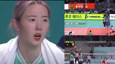 Ekspresi melongo dari pemain GS Caltex, Kang So-hwi, saat duduk di bangku cadangan melihat momen itu pun mencuri perhatian penonton.