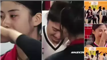 Momen sedih itu dialami oleh rekan satu tim Mega, Park Hye-min yang tertangkap kamera menangis di pinggir lapangan saat pertandingan.