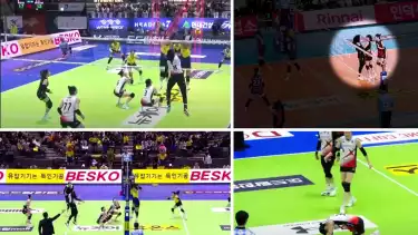 Melihat itu, dua pemain Red Sparks yakni Park Eun-jin dan Yeum Hye-son secara tiba-tiba berjongkok tepat di depan net.
