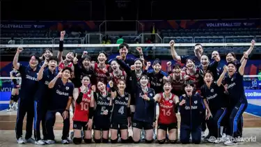 Momen Timnas Voli Putri Korea Selatan berhasil mengakhiri 30 laga tanpa kemenangan. (source: FIVB)