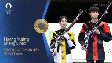 China meraih medali emas pertama di Olimpiade Paris setelah pasangan atlet shoting, Huang Yuting dan Sheng Lihao menjuarai nomor 10 meter air rifle mixed team, Sabtu (27/7/2024).
