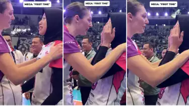 Melihat Mega menangis terharu, Kara pun menanyakan kepada pevoli asal Jember itu soal apa yang membuatnya sedih.