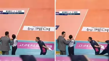 Momen Keributan Asisten Pelatih Pink Spiders dan Ko Hee-jin (Sumber : tangkapan layar SBS Sport)