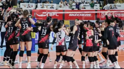 tvOnenews.com - Hasil babak play off Liga Voli Korea 2024-2025, pertandingan terakhir Red Sparks vs Hyundai Hillstate yang berlangsung di Suwon Indoor Gymnasium.