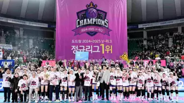 Tim yang dimotori Kim Yeon-koung si Ratu voli Korea itu sukses memenangkan dua pertandingan final yang dimainkan di Samsan World Gymnasium yang merupakan markas mereka sendiri.