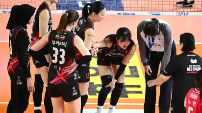 Pada pertandingan kelima yang juga penentuan juara Liga Voli Korea 2024/2025, Yeum Hye-seon mengalami cedera di tengah pertandingan.